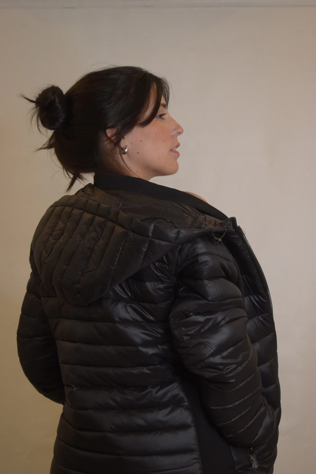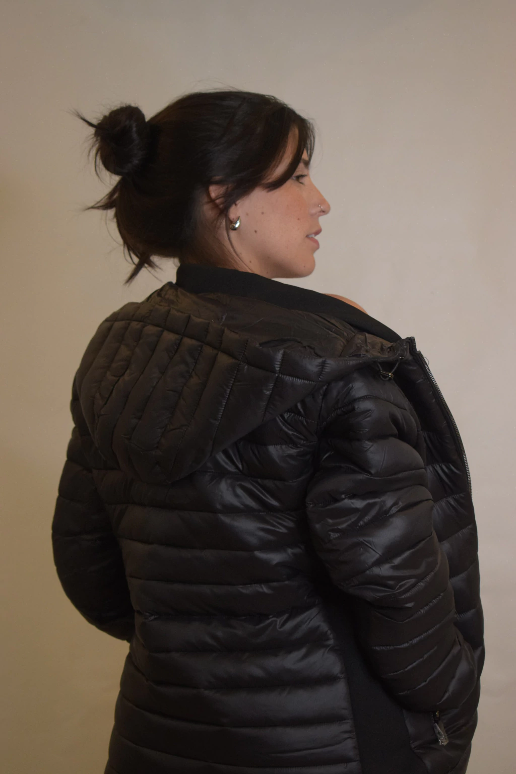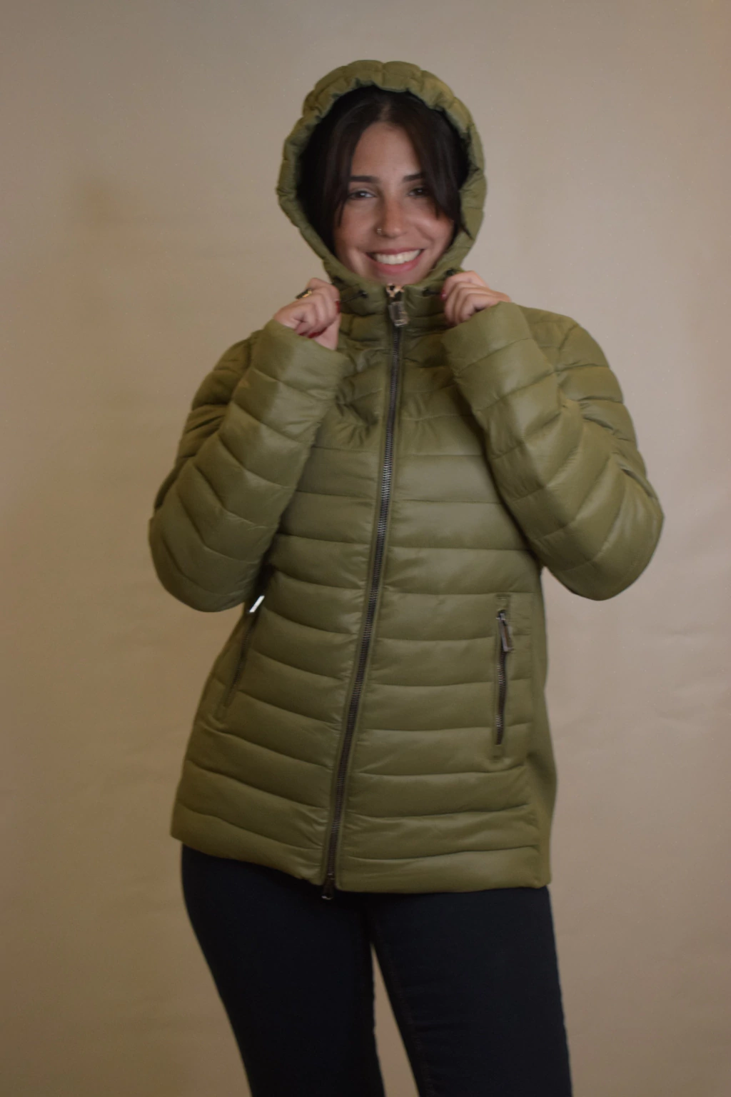 La Campera Antonella es un modelo corto con relleno de pluma sintética. Incorpora una capucha integrada, dos bolsillos externos y dos internos. Sus costados son elastizados y cuenta con felpa en el interior, brindando mayor abrigo