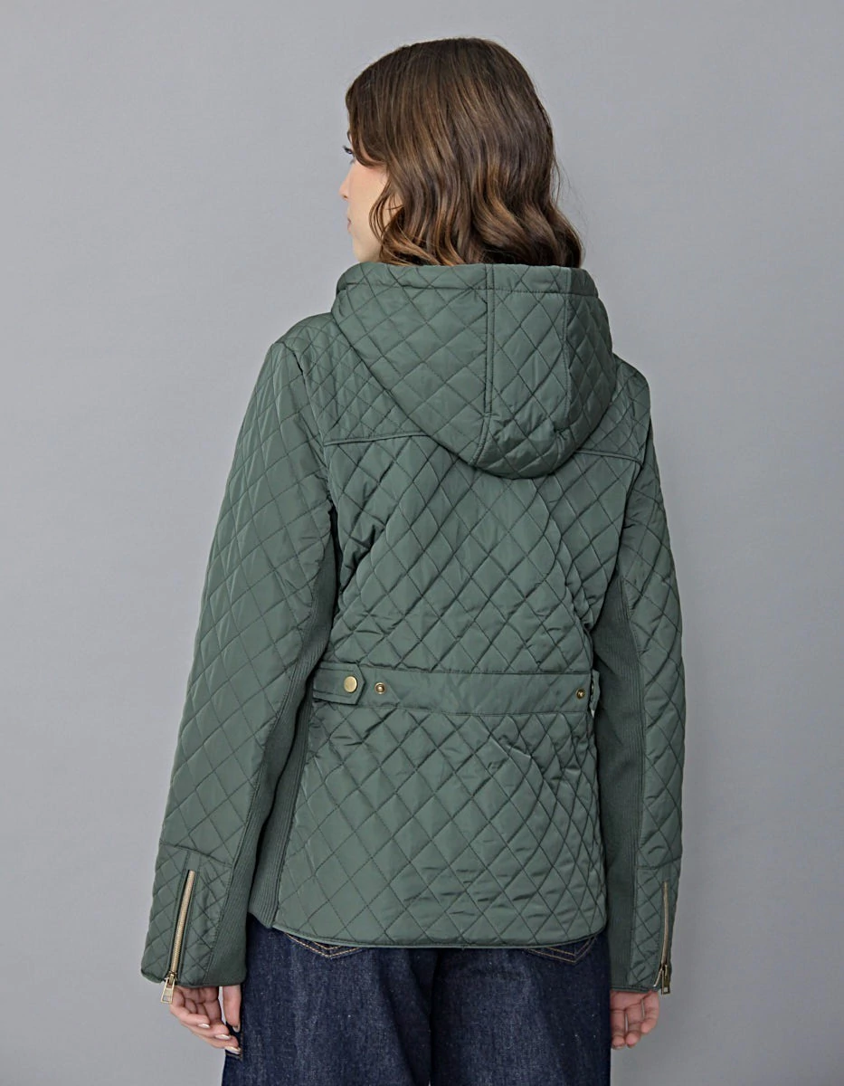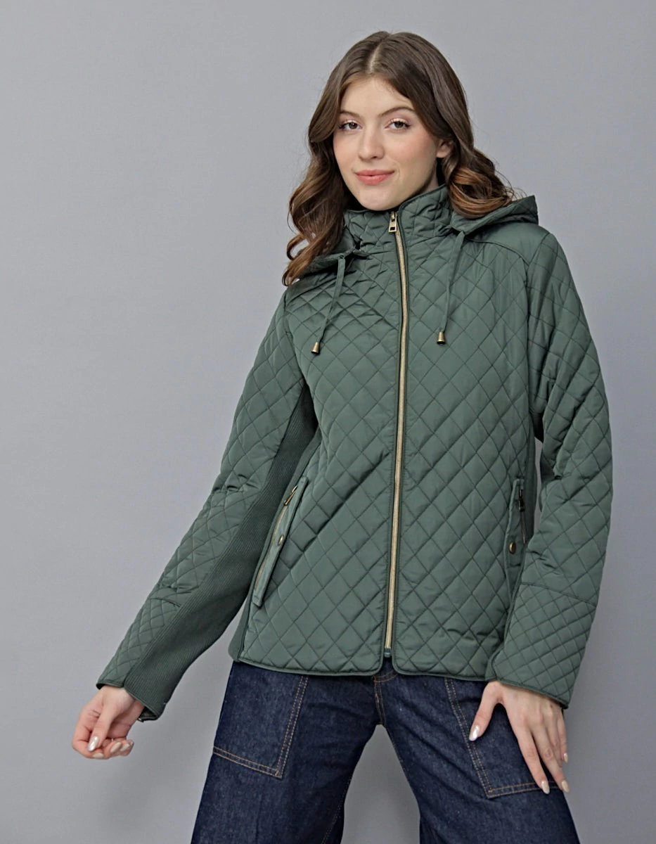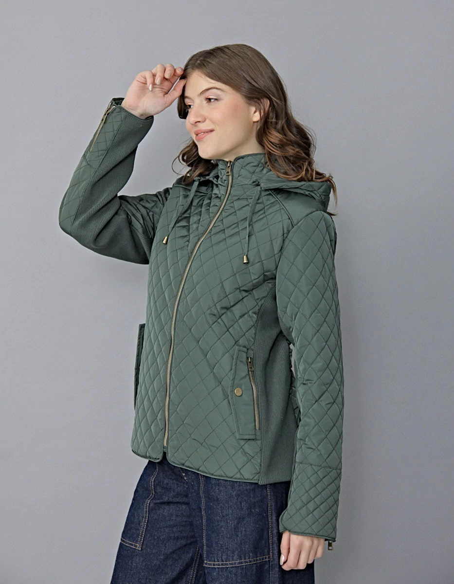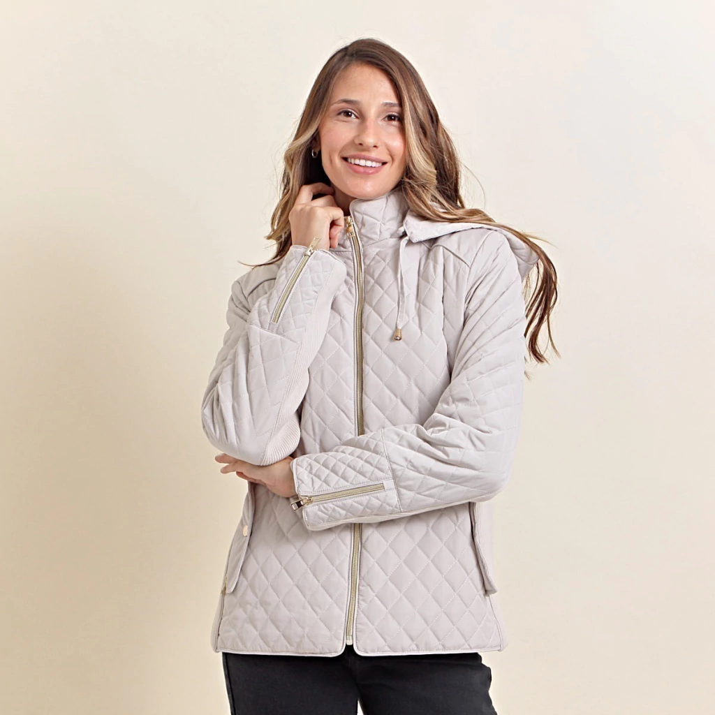 Campera matelaseada con bolsillos exteriores. Morley en los laterales que permiten una mayor flexibilidad. Capucha interior desplegable.