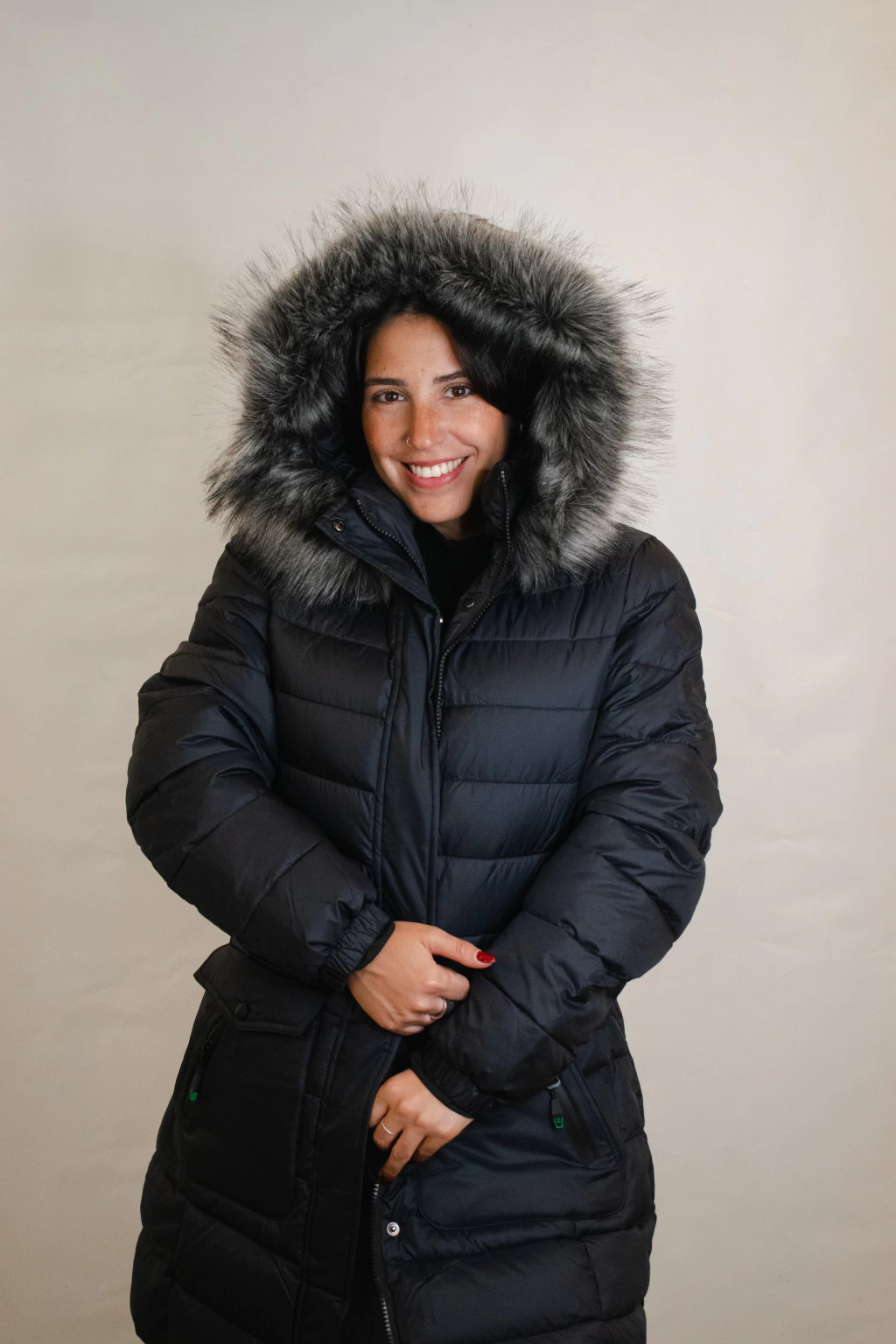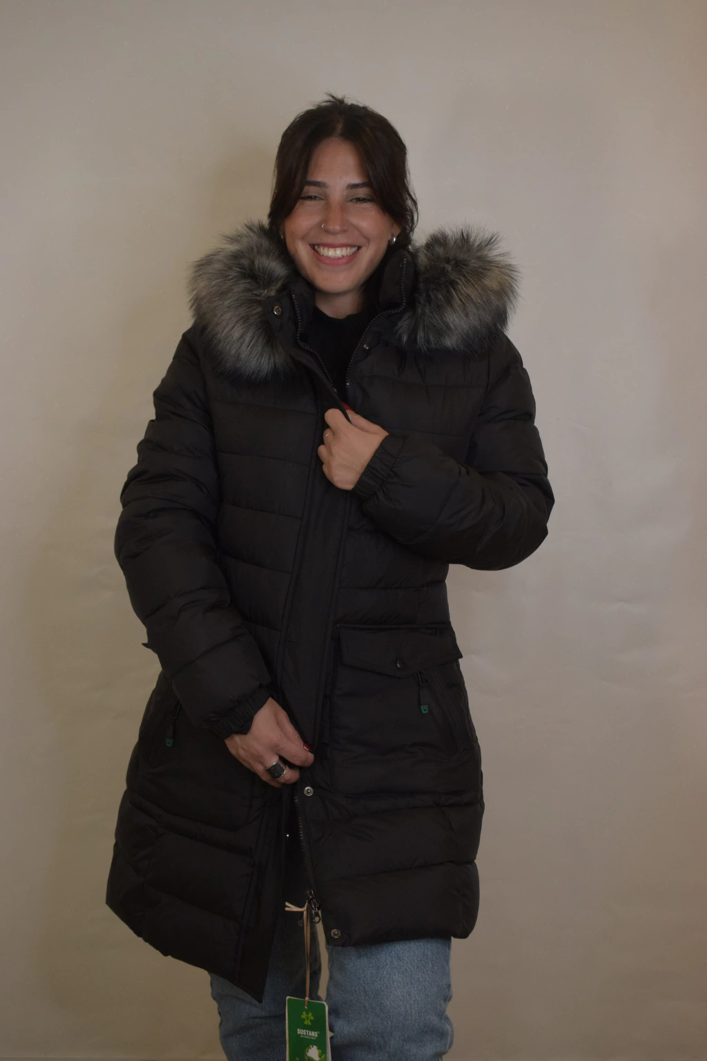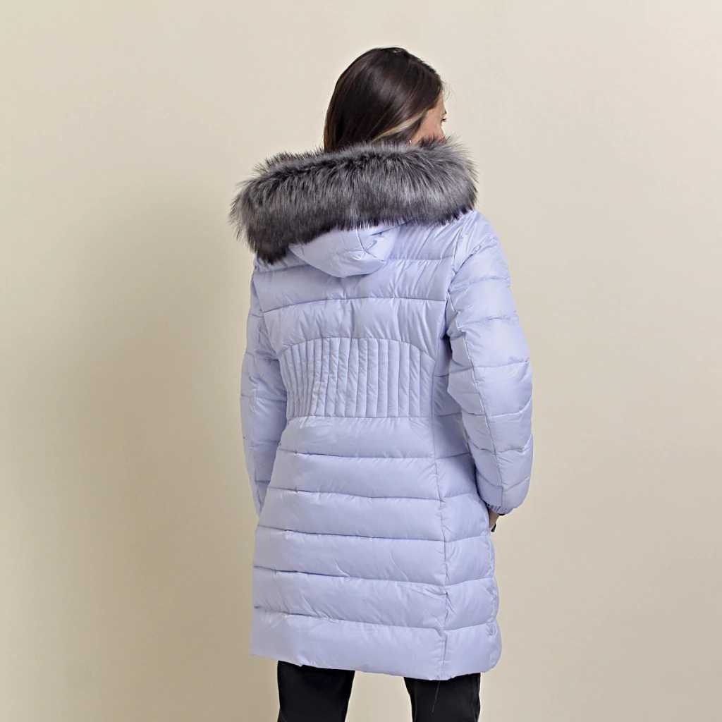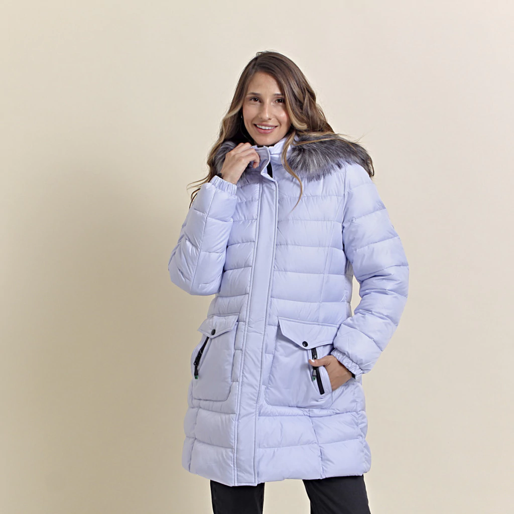 Lucía es un modelo largo y abrigado con relleno de pluma sintética. Su diseño es entallado en la cintura. Cuenta con capucha y piel externa desmontable. Cuenta con dos bolsillos internos y dos externos.