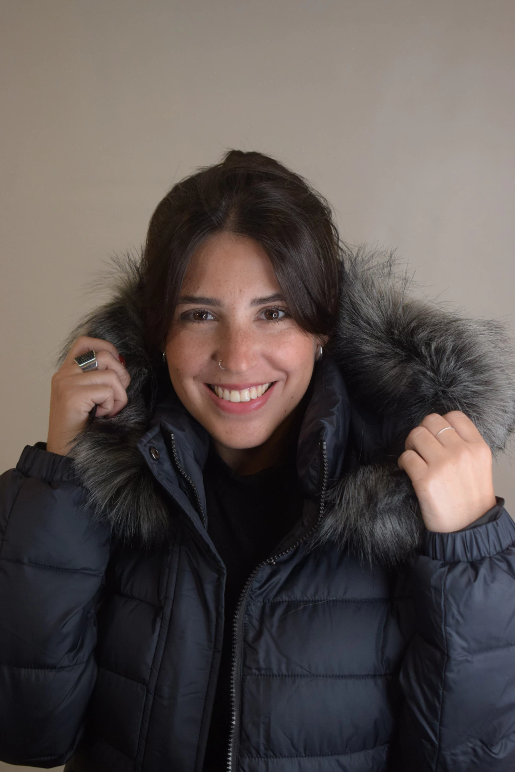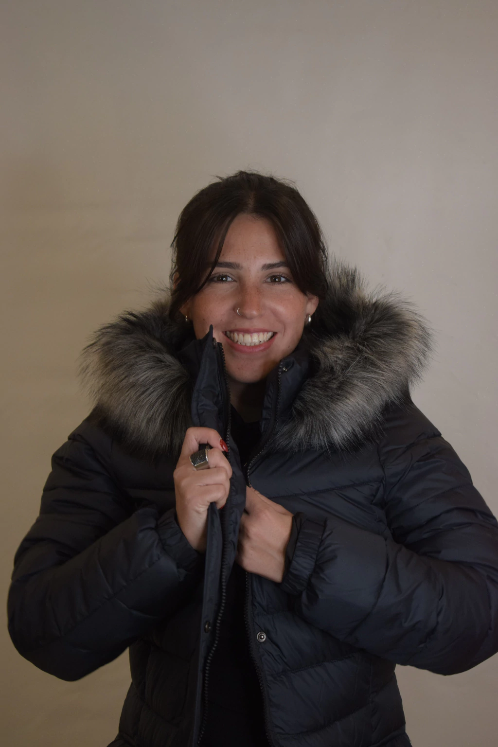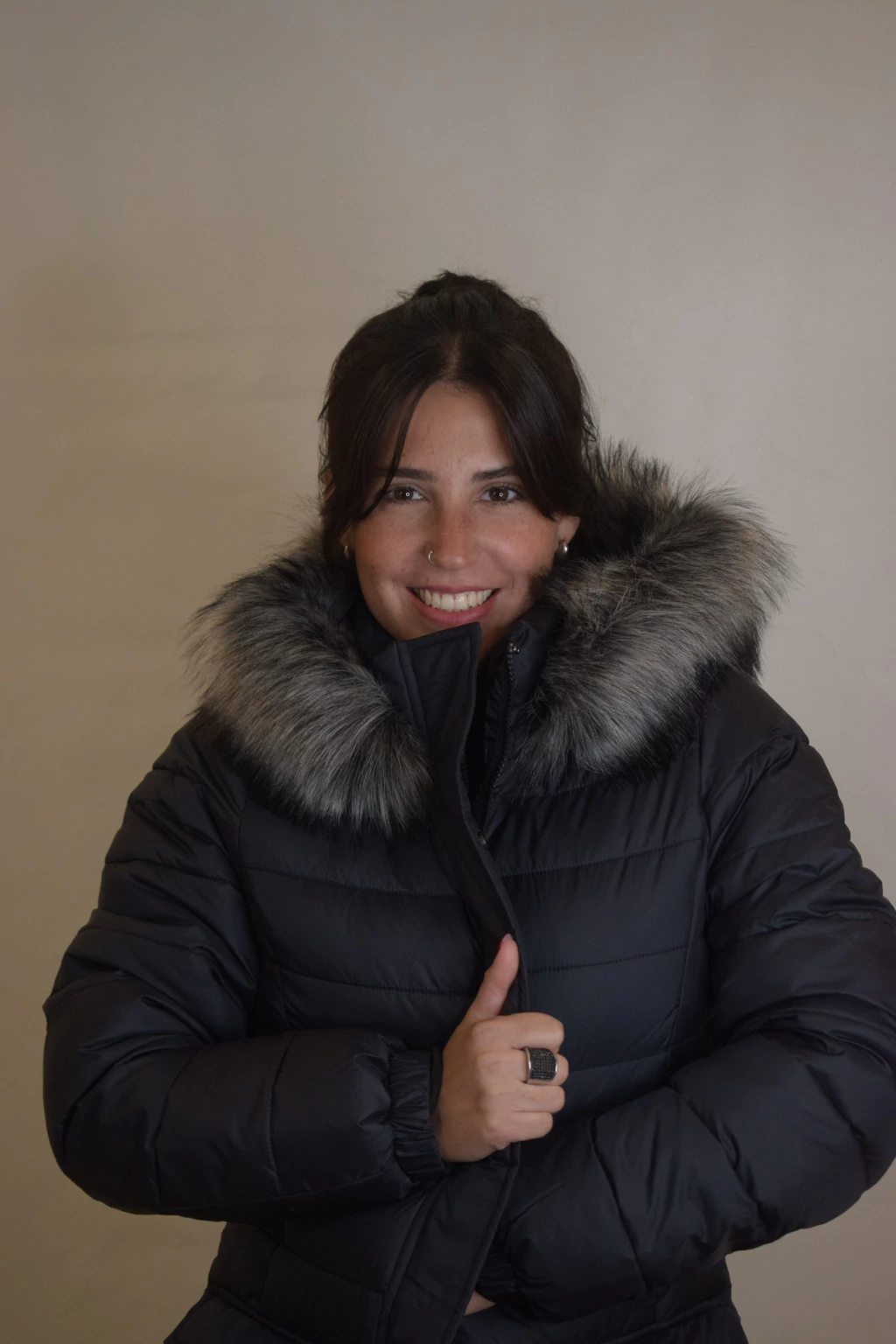 Lucía es un modelo largo y abrigado con relleno de pluma sintética. Su diseño es entallado en la cintura. Cuenta con capucha y piel externa desmontable. Cuenta con dos bolsillos internos y dos externos.
